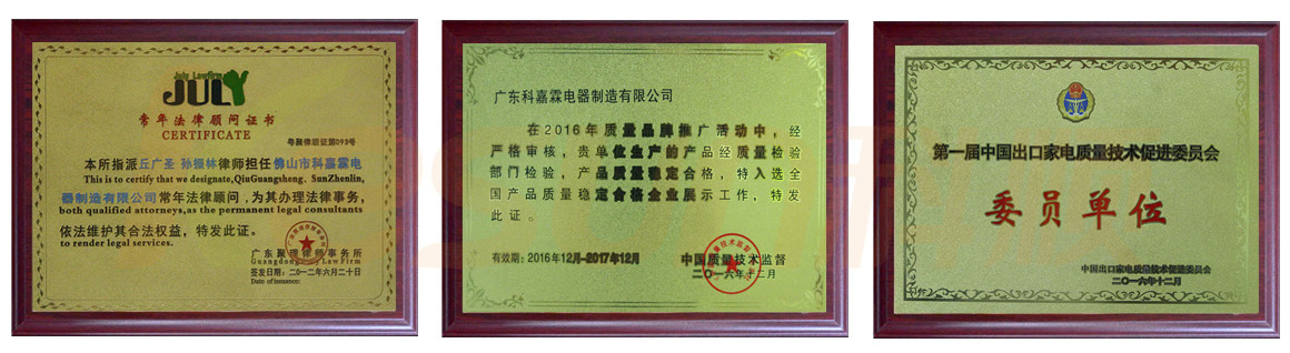 科嘉霖的光輝歲月,激情凝聚在沉實(shí)與開(kāi)拓之中??萍瘟禺a(chǎn)品先后通過(guò)ISO9001: 2015國(guó)際質(zhì)量管理體系認(rèn)證、3C認(rèn)證、國(guó)際CE、GS、UL、CB、ETL、QA、EMC等權(quán)威認(rèn)證,擁有先進(jìn)的ERP管理系統(tǒng)。2009年廣東科嘉霖電器制造有限公司被廣東省科學(xué)技術(shù)廳授予“高新技術(shù)企業(yè)”榮譽(yù)稱號(hào),2010年科順榨汁機(jī)獲得了“廣東省名牌產(chǎn)品”榮譽(yù)稱號(hào)。2015年,公司被政府授予了佛山市和順德區(qū)多功能食品料理機(jī)工程技術(shù)研究中心。2016年,授予了廣東省多功能食品料理機(jī)工程技術(shù)研究中心??祈橂娖饕云湫路f外觀、卓越品質(zhì)、優(yōu)質(zhì)服務(wù)和高性價(jià)比,贏得廣大中外客戶的認(rèn)可和厚愛(ài)。
